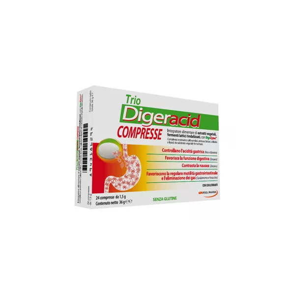 Descrizione Integratore alimentare a base di estratti vegetali ed enzimi con fermenti lattici. Contiene estratti vegetali di zenzero, olii essenziali di finocchio e cardamomo utili per la funzione digestiva. Lo zenzero e gli olii essenziali di finocchio e cardamomo inoltre coadiuvano la regolare motilità gastrointestinale e l'eliminazione dei gas. La farina di riso possiede azione emolliente e lenitiva (sistema digerente) ed è utile per il controllo dell'acidità gastrica. La banana in polvere controlla anch'essa l'acidità gastrica e favorisce la funzione digestiva.