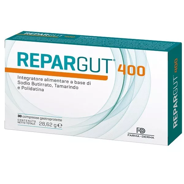 Ingredienti Sodio butirrato; agenti di carica: cellulosa microcristallina, calcio fosfato bibasico; tamarindo (Tamarindus indica L., frutto) estratto secco titolo min. 75% in xiloglucani; agenti di rivestimento: idrossipropilmetilcellulosa, gommalacca, acido stearico; polidatina estratta da radice di Polygonum cuspidatum Sieb; agenti antiagglomeranti: biossido di silicio, sali di magnesio degli acidi grassi; stabilizzante: glicerolo; aroma menta; colorante: riboflavina.
