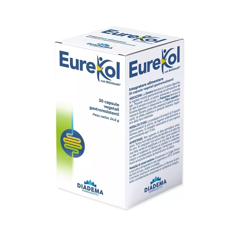 Modalità d'uso La posologia di Eurekol è di 2 capsule vegetali gastroresistenti al giorno, da ingerire preferibilmente a stomaco pieno. Si consiglia l'assunzione di una capsula vegetale gastroresistente ogni 12 ore.