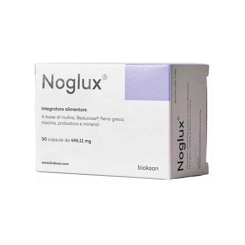 Descrizione Integratore alimentare a base di inulina, Reducose, fieno greco, niacina, probiotico e minerali.