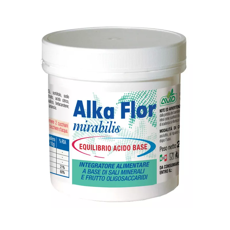 Descrizione Alka Flor è un integratore alimentare a base di sali minerali e frutto oligosaccaridi, utile per svolgere una naturale azione antiacida e alcalinizzante del tratto digerente e del pH urinario.
