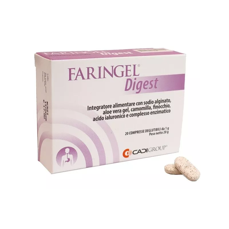 Descrizione Integratore alimentare con sodio alginato, aloe vera gel, camomilla, finocchio, acido ialuronico e complesso enzimatico. Il finocchio e la camomilla hanno effetti benefici sulla funzione digestiva, sulla regolare motilità gastrointestinale e sull’eliminazione dei gas; l’aloe gel e la camomilla svolgono azione emolliente e lenitiva sul sistema digerente.