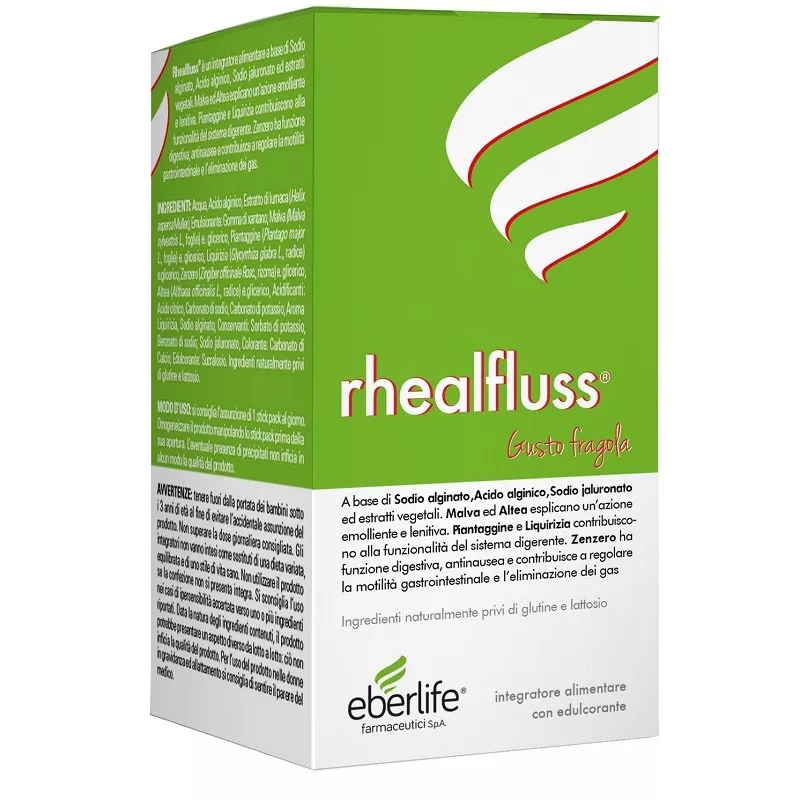 Descrizione Integratore alimentare a base di sodio alginato, acido alginico, sodio ialuronato ed estratti vegetali. Malva ed altea esplicano un'azione emolliente e lenitiva. Piantaggine e liquirizia contribuiscono alla funzionalità del sistema digerente. Zenzero ha funzione digestiva, antinausea e contribuisce a regolare la motilità gastrointestinale e l'eliminazione dei gas.