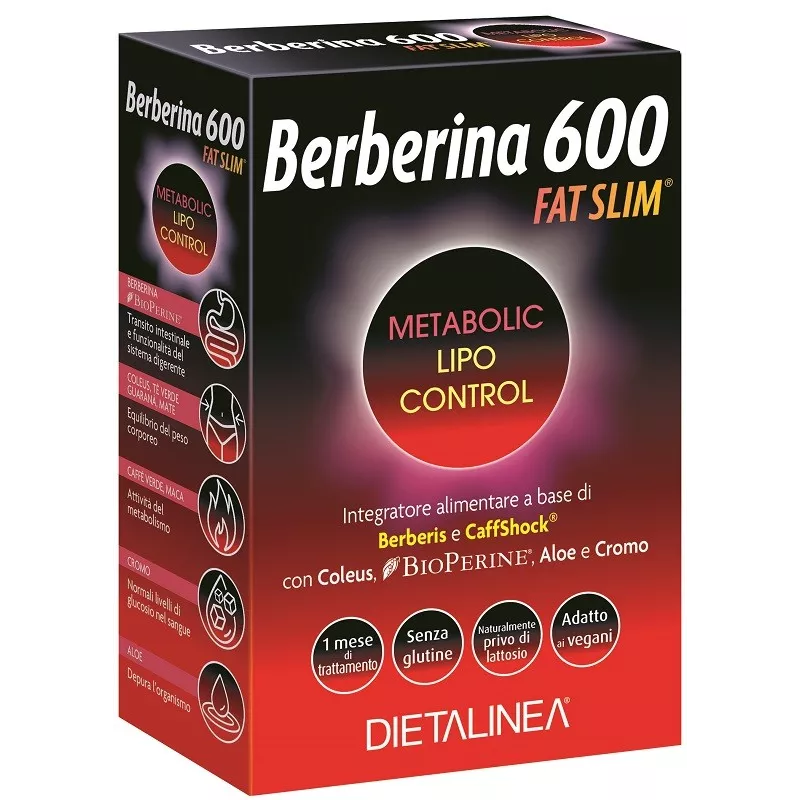 Ingredienti Berberis (Berberis aristata DC) corteccia dei rami e.s. tit. 97% in berberina HCl, CaffShock, miscela naturale e sinergica di e.s. tit. 20% in polifenoli e formata da: caffè verde (Coffea arabica L., seme), guaranà (Paullinia cupana Kunth, seme), tè verde (Camellia sinensis L. Kuntze, foglia), matè (Ilex paraguariensis A. St. Hil., foglia), maca (Lepidium meyenii Walp., radice); agente di carica: fosfato di calcio; Coleus forskohlii Willd. Bricq.) radice e.s. tit. 20% in forskolina, carbonato di calcio; agente stabilizzante: carbossimetilcellulosa sale sodico; agenti antiagglomeranti: biossido di silicio, magnesio stearato; BioPerine (Piper nigrum L.) frutto e.s. tit. 95% in piperina, aloe (Aloe vera L. Burm. F.) gel sine cute 200:1, picolinato di cromo.