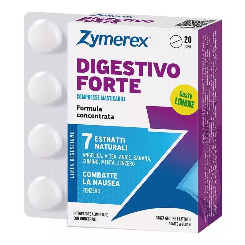 Ingredienti Edulcoranti: sorbitolo, xilitolo, sucralosio; estratto secco di altea (Althaea officinalis L., radice) rapporto D/E 4/1, polvere di banana disidratata (Musa paradisiaca L. (pro sp.), frutto); agente di carica: cellulosa microcristallina; estratto secco di angelica (Angelica archangelica L., radice) rapporto D/E 4/1; agenti antiagglomeranti: sali di magnesio degli acidi grassi, biossido di silicio; estratto secco di zenzero (Zingiber officinale Rosc., rizoma) titolato al 5% in gingeroli, aromi naturali, bromelina 2.500 GDU/g da gambo d'ananas (Ananas comosus (L.) Merr.), olio essenziale di menta (Mentha x piperita L., foglie), olio essenziale di anice verde (Pimpinella anisum L., frutti), olio essenziale di cumino (Cuminum cyminum L., frutti).