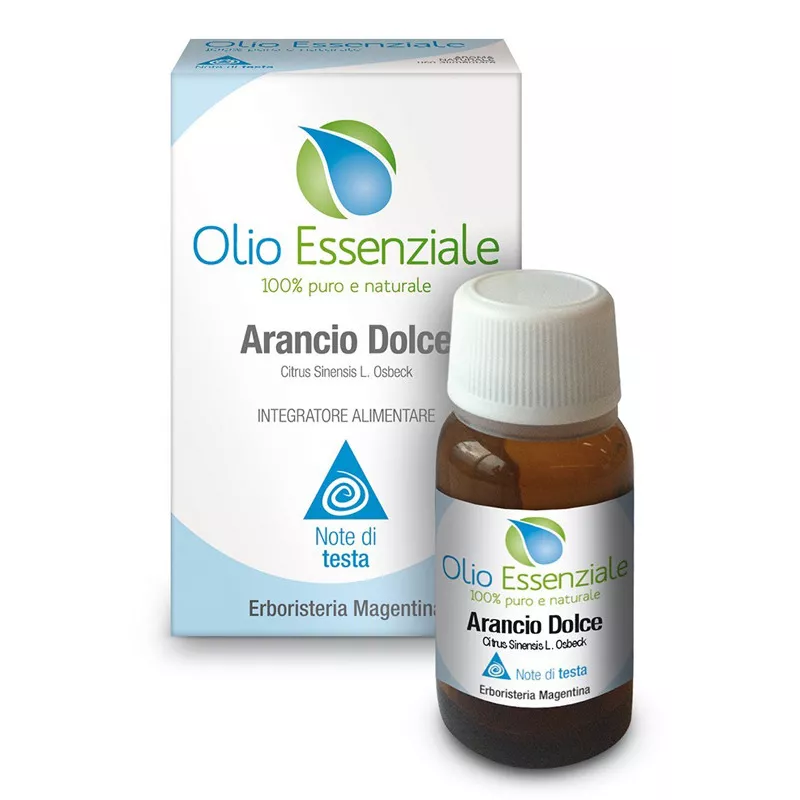 Olio essenziale di arancio dolce. Il prodotto favorisce la normale funzione digestiva e l'eliminazione dei gas intestinali.