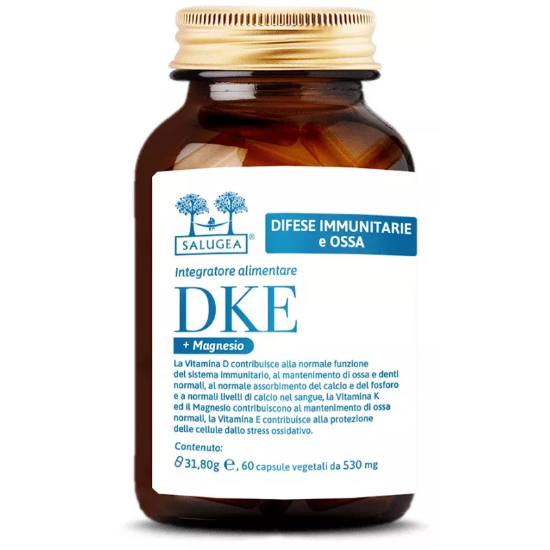 Descrizione Integratore alimentare. La vitamina D contribuisce alla normale funzione del sistema immunitario, al mantenimento di ossa e denti normali, al normale assorbimento del calcio e del fosforo e a normali livelli di calcio nel sangue, la vitamina K ed il magnesio contribuiscono al mantenimento di ossa normali, la vitamina E contribuisce alla protezione delle cellule dallo stress ossidativo.