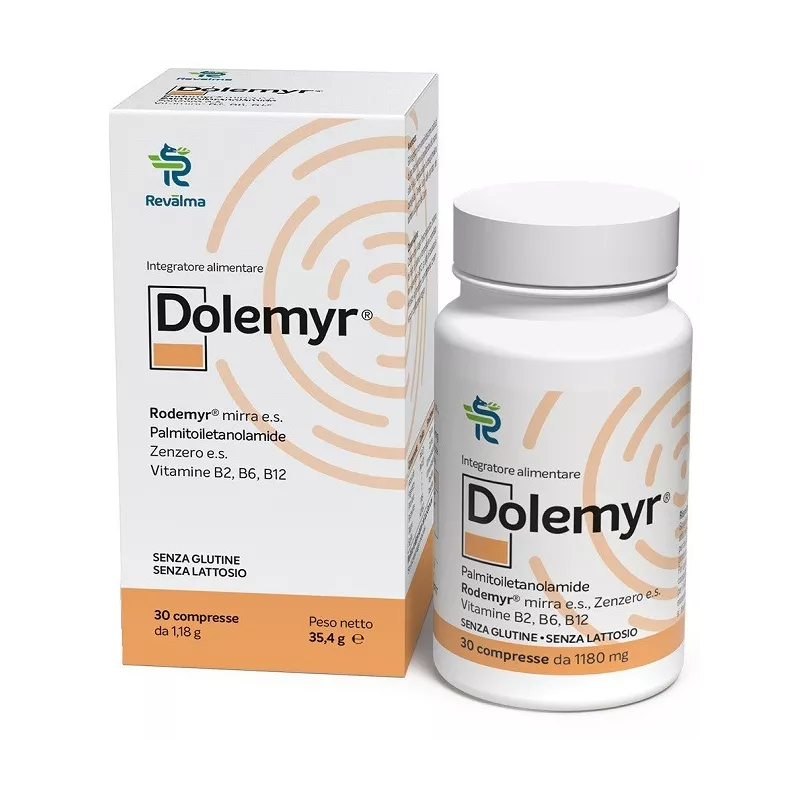 Ingredienti Agenti di carica: fosfato di calcio, idrossimetilcellulosa, cellulosa microcristallina, idrossipropilcellulosa; RodeMyr mirra e.s. [Commiphora myrrha (Ness) Engl.] oleo-gomma-resina tit. 4% in furanodieni, palmitoiletanolamide, zenzero e.s. (Zingiber officinale Rosc.) rizoma tit. 20% in gingeroli; agenti di rivestimento: etilcellulosa, idrossido di ammonio, trigliceridi a media catena; acido oleico, idrossipropilmetilcellulosa, calcio carbonato, polietilenglicole, ossido di ferro, talco, alginato di sodio, acido stearico, acidi grassi; agenti antiagglomeranti: biossido di silicio, magnesio stearico; vitamina B6 (piridossina cloridrato), vitamina B2 (riboflavina), vitamina B12 (cianocobalamina).