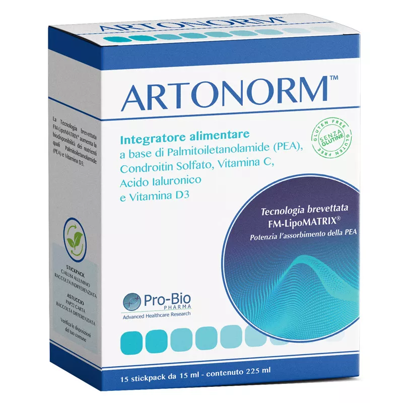 Descrizione Artonorm è un integratore alimentare a base di palmitoiletanolamide (PEA), condroitin solfato, vitamina C, acido ialuronico e vitamina D3. La vitamina D3 sostiene la formazione del collagene per la normale funzione delle ossa e delle cartilagini. La vitamina D favorisce il mantenimento di ossa normali e contribuisce al mantenimento della normale funzione muscolare.