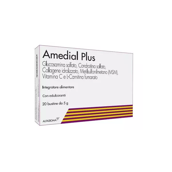 La vitamina C contenuta in Amedial Plus, aiuta la regolare formazione del collagene per mantenere in buono stato le ossa, contribuendo inoltre alla formazione del collagene per il buon funzionamento delle cartilagini.