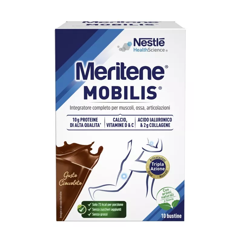 Modalità d'uso 1 bustina al giorno. Aggiungere il contenuto di una bustina in 150 ml di acqua e mescolare con cura fino a completa dissoluzione. Meritene Mobilis può anche essere aggiunto allo yogurt o al latte.