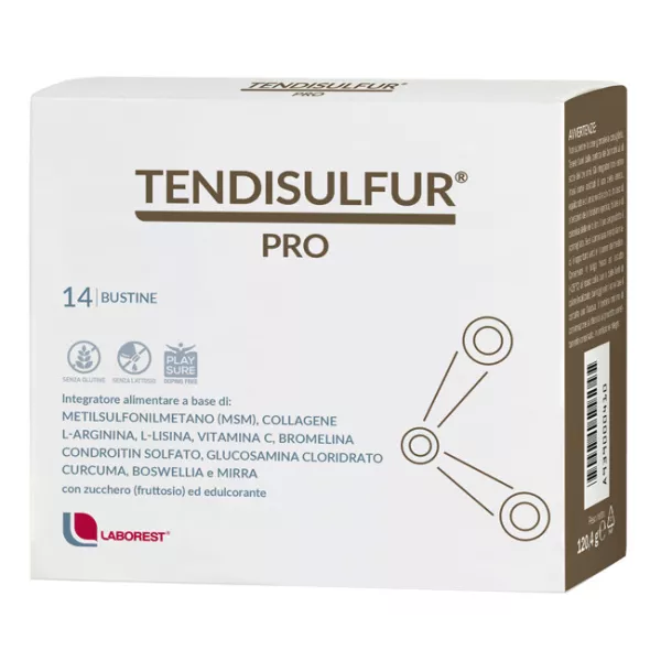 Ingredienti Metilsulfonilmetano (MSM), fruttosio, collagene idrolizzato suino, L-arginina, L-lisina cloridrato, vitamina C (acido L-ascorbico); acidificante: acido citrico; bromelina da gambo di ananas e.s. [Ananas comosus (L.) Merr., maltodestrine] 2.500 GDU/g; glucosamina cloridrato, condroitin solfato bovino, aroma, Bosliq [Boswellia carteri Birdw (gummi-resina) e.s. supportato su proteine di riso] tit. in acido cheto-boswellico (AKBA), curcuma rhizoma e.s. (Curcuma longa L.) tit. in curcuminoidi; agente antiagglomerante: biossido di silicio; Myrliq [Commiphora myrrha (Nees) Engl. (oleum-gummi-resina) e.s. supportato su proteine di riso] tit. in furanodieni; edulcorante: sucralosio.