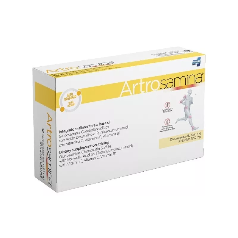 Integratore alimentare a base di glucosamina, condroitin solfato, acio boswellico e tetraidrocurcuminoidi con vitamina C, vitamina E e vitamina B1, utile per integrare l'alimentazione o soddisfare gli aumentati fabbisogni organici di tali nutrienti, che si possono verificare in talune situazioni carenziali. Boswellia risulta utile per la fisiologica funzionalità articolare, mentre la vitamina C contribuisce alla normale formazione del collagene per la normale funzionalità delle cartilagini. La vitamina E contribuisce alla protezione delle cellule dallo stress ossidativo.