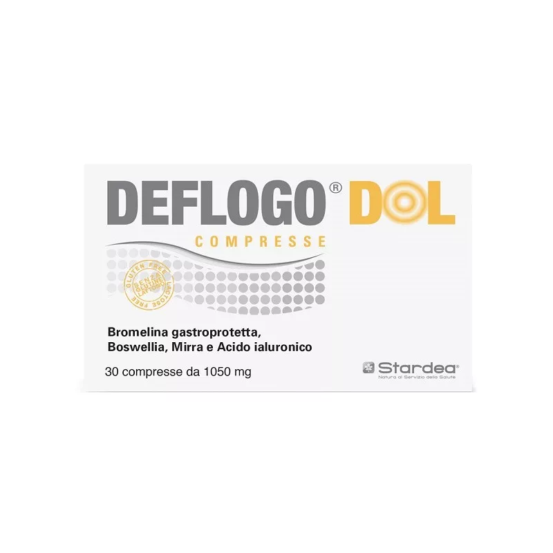 Ingredienti Agente di carica: calcio fosfato; bromelina gastroresistente [maltodestrine, bromelina, Ananas comosus (L.) Merr. frutto e gambo estratto secco; agenti di rivestimento: gommalacca, idrossido di ammonio]; agente di carica: cellulosa microcristallina; Boswellia estratto secco tit. 75% in acidi boswellici e tit. 10% in acido 3-O-acetil-11-cheto-beta-boswellico (Boswellia serrata Roxb. Ex Colebr. resina), mirra estratto secco D/E 10:1 [Commiphora myrrha (Nees) Engl. resina, maltodestrine]; stabilizzante: copolimero di polivinilpirrolidone vinilacetato; sodio ialuronato; agenti antiagglomeranti: sali di magnesio degli acidi grassi, biossido di silicio; manganese solfato monoidrato; vitamina D3 (saccarosio; addensante: gomma arabica, amido di mais, trigliceridi a media catena; agente antiagglomerante: calcio fosfato, colecalciferolo; antiossidante: DL-alfa-tocoferolo).