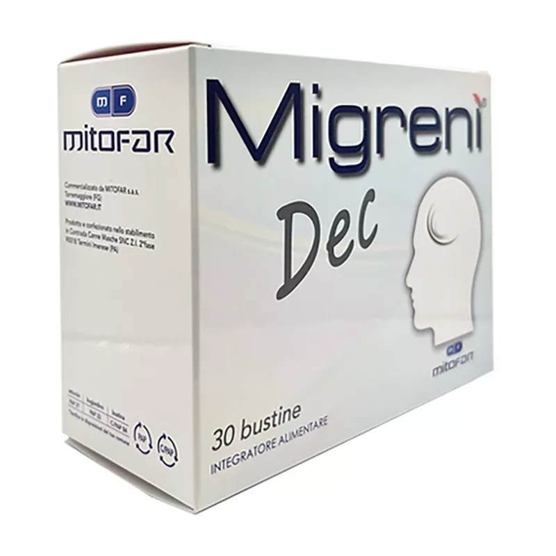 Descrizione È un integratore alimentare multifasico formulato in accordo con le più recenti acquisizioni di evidence based medicine (EBM). La formulazione proposta ed i componenti contenuti nel Migrenì dec sono supportate da evidenze scientifiche e studi epidemiologici. Consultando la letteratura biomedica l'utilizzatore di Migrenì dec potrà informarsi sulle caratteristiche farmacocinetiche e farmacodinamiche dell'integratore, trovando una risposta scientifica alle proprie curiosità e perplessità. Migrenì dec agisce sostenendo l'individuo, anche superiore ai tre anni di età, a particolari condizioni di stress psico-fisico come mal di testa. Sostegno inteso come attività ancillare o coadiuvante di altre terapie alle quali chi lo utilizza è sottoposto. Migrenì dec, ad esempio, può essere assunto come coadiuvante della terapia antinfiammatoria (FANS) a cui è sottoposto chi soffre di mal di testa.