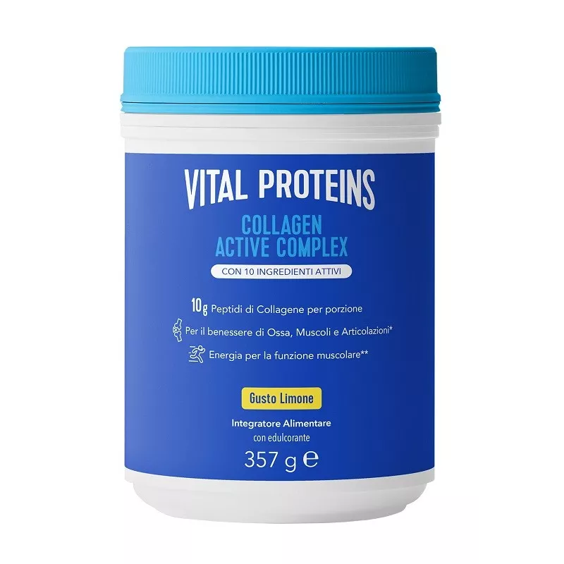 Ingredienti Peptidi di collagene, glicina, minerali (lattato di calcio, citrato di magnesio, citrato di calcio, gluconato di zinco), correttore di acidità (acido citrico), stabilizzante (gomma di xanthan), vitamine (C, D, K, riboflavina, B6), acido ialuronico (da ialuronato di sodio), edulcorante (glicosidi steviolici da Stevia), aromi.