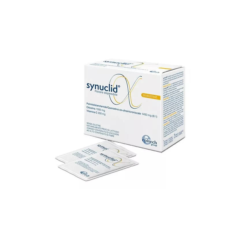 Modalità d'uso Si consiglia l'assunzione di una bustina di Synuclid al giorno, preferibilmente a stomaco pieno. Disperdere il contenuto di una bustina in un bicchiere d'acqua (circa 200 ml), mescolare ed assumere. Synuclid può essere assunto anche mescolato con acqua gelificata, yogurt, succhi di frutta o altri alimenti.
