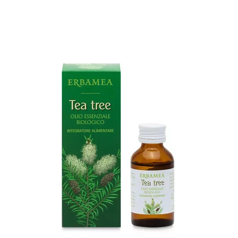 Olio essenziale biologico puro di Tea Tree (Melaleuca alternifolia) utile per la funzionalità delle prime vie respiratorie. È un integratore alimentare e l’olio essenziale, ha un contenuto di terpinene-4-olo del 30%-48% e di 1,8-cineolo non superiore al 15%.