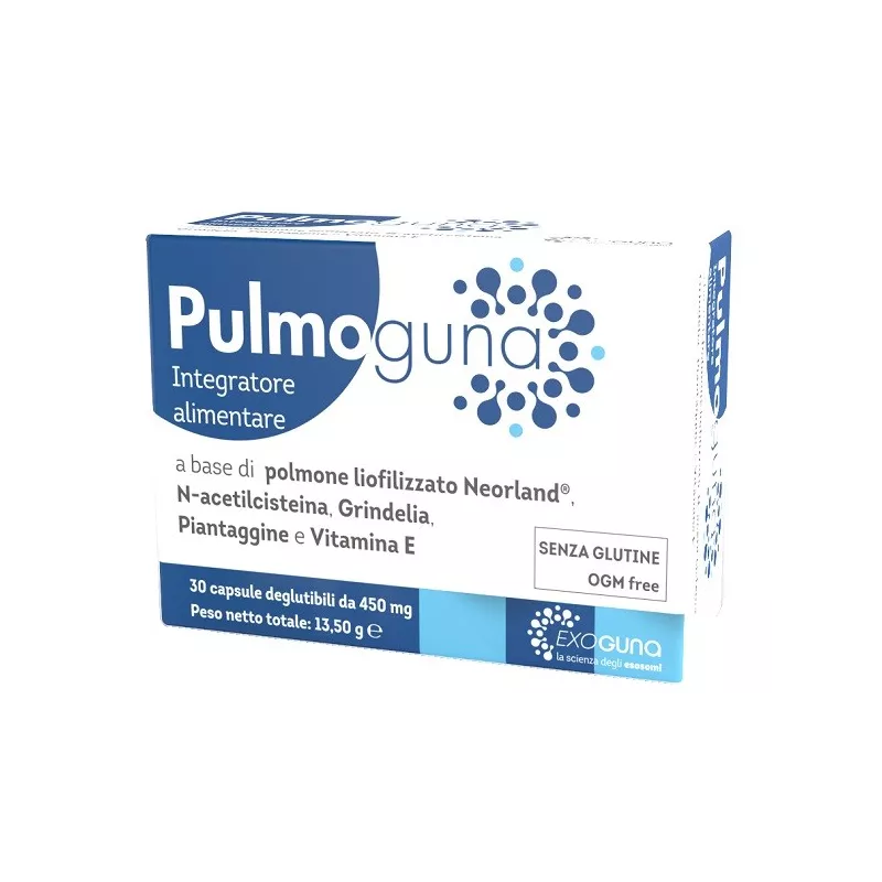 Modalità d'uso Assumere 2 capsule di Pulmoguna al giorno; deglutire la capsula accompagnandola con acqua.