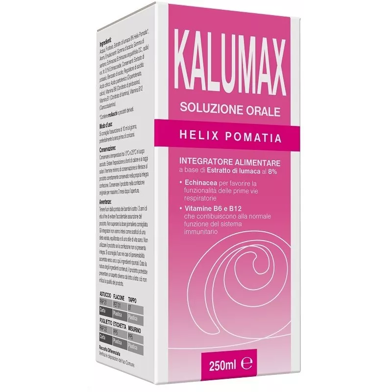 Ingredienti Acqua, fruttosio, estratto di lumaca 8% Helix pomatia*, aromi; emulsionanti: gomma d'acacia, gomma di xantano; echinacea (Echinacea angustifolia DC., radix) e.s. tit. 0,1% echinacoside; conservanti: sorbato di potassio, benzoato di sodio; regolatore di acidità: acido citrico; acido pantotenico (D-pantotenato, calcio), vitamina B6 (cloridrato di piridossina), vitamina B1 (cloridrato di tiamina), vitamina B12 (cianocobalamina).