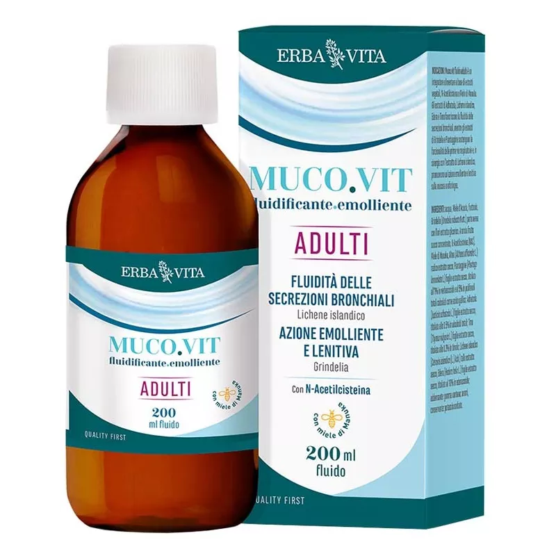 Ingredienti Acqua, miele d'Acacia, fruttosio, grindelia (Grindelia robusta Nutt.) parte aerea con fiori estratto glicerico, Arancia frutto succo concentrato, N-acetilcisteina (NAC), miele di Manuka, altea (Althaea officinalis L.) radice estratto secco, piantaggine (Plantago lanceolata L.) foglie estratto secco, titolato all'1% in verbascosidi e al 5% in polifenoli totali calcolati come acido gallico; adhatoda (Justicia adhatoda L.) foglie estratto secco, titolato allo 0,5% in alcaloidi totali; timo (Thymus vulgaris L.) foglie estratto secco, titolato allo 0,3% in timolo; lichene islandico (Cetraria islandica (L.) Ach.) tallo estratto secco, edera (Hedera helix L.) foglie estratto secco, titolato al 10% in ederacoside; addensante: gomma xantana; aromi; conservante: potassio sorbato.