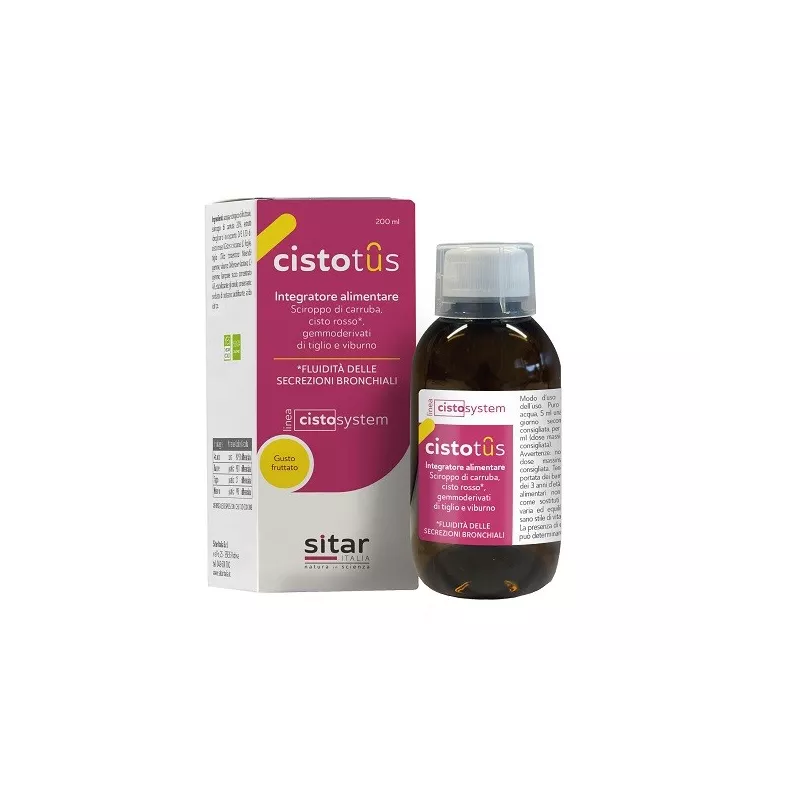 Descrizione Integratore alimentare a base di sciroppo di carruba, estratti idroglicerici di cisto rosso, tiglio, viburno e succo concentrato di lampone.
