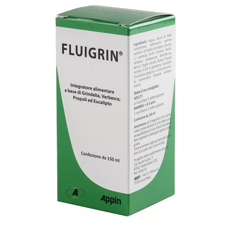 Ingredienti Acqua, succo di mela concentrato; addensanti: gomma xantano; grindelia (Grindelia robusta L.) sommità fiorite estratto fluide, verbasco (Verbascum densiflorum, Bertol.) foglie estratto fluido, propoli estratto 3,5% in galangina, eucalipto (Eucaliptus globulus, L.) olio essenziale; conservanti: potassio sorbato; aroma.