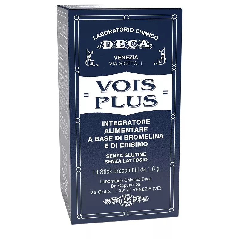 Ingredienti Bromelina 5.000 GDU/g, erisimo [Sisymbrium officinalis (L.) Scop.] sommità con fiori e.s. tit. 0,5% glucosidi solforati; correttori di acidità: acido citrico; agente antiagglomerante: silice colloidale; aroma: arancio; edulcoranti: eritritolo; sucralosio.
