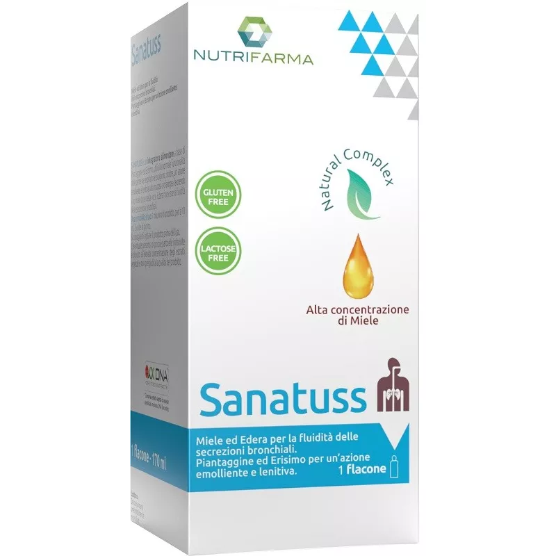 Ingredienti Acqua, miele, saccarosio, estratto fluido 1:1 di piantaggine (acqua, alcol etilico, Plantago lanceolata L. foglie), erisimo [Sisymbrium officinale (L.) Scop.] parti aeree fiorite e.s., edera (Hedera helix L.) foglie e.s. tit. 10% in ederacoside C; conservanti: sorbato di potassio, benzoato di sodio; acidificante: acido citrico.