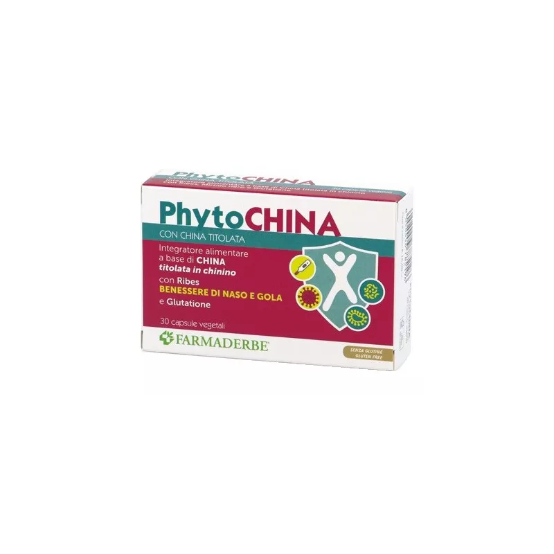 Descrizione Integratore alimentare a base di china, ribes, mirtillo nero e glutatione. La china sostiene il processo di sudorazione, il ribes sostiene il benessere di naso e gola e la funzionalità articolare ed il mirtillo sostiene la regolarità del transito intestinale e la funzionalità del microcircolo.