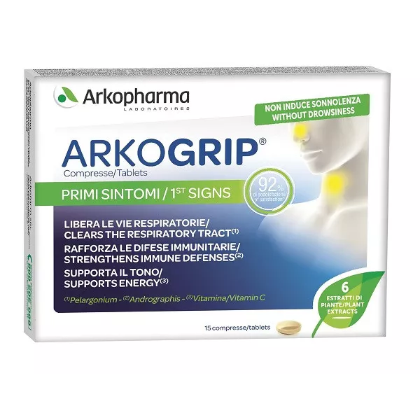 Descrizione Integratore alimentare a base di piante, vitamina C e minerali. Compresse a base di pelargonium, marrubio bianco ed eleuterococco per favorire il benessere respiratorio. L'eleuterococco agisce più specificatamente sulle vie respiratorie, come il naso e la gola, e possiede anche proprietà tonificanti per sostenere le performance fisiche e mentali. La vitamina C contribuisce alla riduzione della stanchezza ed al normale funzionamento del sistema immunitario, insieme ad andrographis, echinacea, rame e selenio. Arkogrip contiene anche china ed olio essenziale di timo che favorisce la fluidità delle secrezioni bronchiali ed il benessere di naso e gola.
