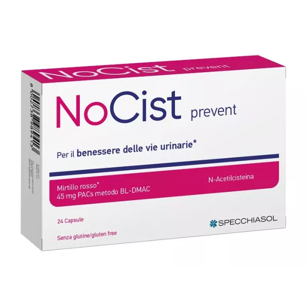 Descrizione Integratore alimentare a base di estratti di mirtillo rosso e betulla, utile per favorire la funzionalità delle vie urinarie e il drenaggio dei liquidi corporei, con N-acetilcisteina. NoCist Prevent è ricco in proantocianidine (PACs), infatti ne contiene ben 45 mg al giorno titolate con metodo BL-DMAC.