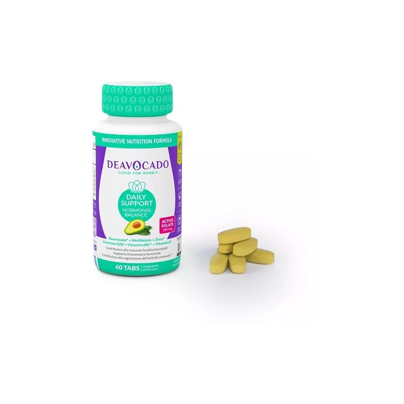 Ingredienti Agenti di carica: cellulosa, fosfati di calcio; Deavocado 100% italiano (Persea americana Mill., frutto fermentato) polvere; stabilizzanti: carbossimetilcellulosa sodica reticolata, acidi grassi; rivestimento (agenti di rivestimento: idrossipropilmetilcellulosa, isomalto, cellulosa, idrossipropilcellulosa; colorante: carbonato di calcio; amido, estratto di spirulina, trigliceridi a media catena), vitamina D (colecalciferolo), gluconato di zinco, coenzima Q10 (Co Q10), vitamina B6 (cloridrato di piridossina); agente antiagglomerante: biossido di silicio; colorante: riboflavina; acido folico (L-metilfolato di calcio), vitamina B12 (metilcobalamina).