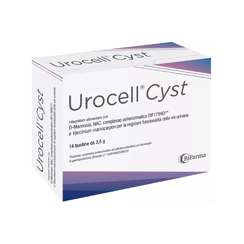 Descrizione Integratore alimentare con D-mannosio, NAC, complesso polienzimatico DIF17BRO e Vaccinium macrocarpon titolato in proantocianidine A, che favorisce la funzionalità delle vie urinarie.