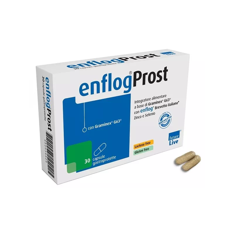 Descrizione Integratore alimentare a base di Graminex G63 con enflog (complesso enzimatico costituito dagli enzimi proteolitici bromelina, papaina e proteasi da fungo Aspergillus oryzae), zinco e selenio. Lo zinco ed il selenio contribuiscono alla protezione delle cellule dallo stress ossidativo.