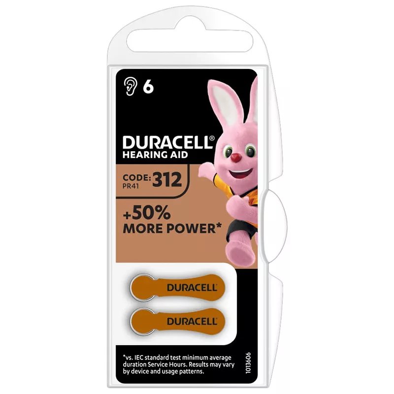 Batterie per apparecchi acustici duracell formato 312 - batteria di lunga durata senza mercurio