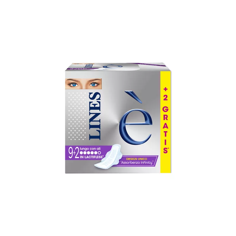 Dotato di un design unico, gli assorbenti Lines è sono caratterizzati dall'assorbenza Infinity. La disposizione dei micro-fori ad "infinito" garantiscono la massima flessibilità seguendo i movimenti della donna e garantendo una maggior velocità di assorbenza dei liquidi.