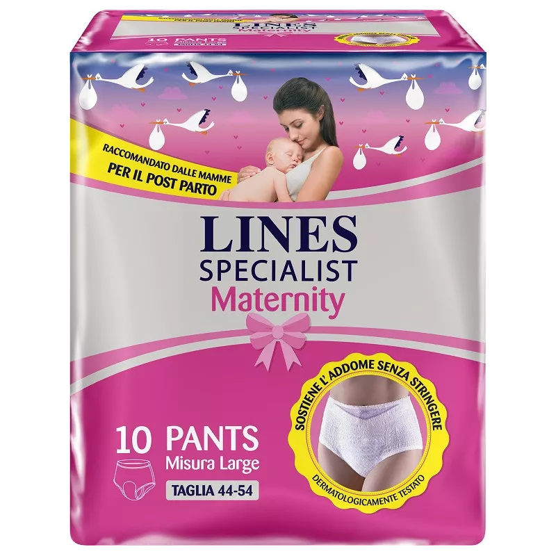 LINES SPECIALIST MATERNITY MUTANDINA ASSORBENTE PER PERDITE POST PARTO MISURA LARGE 10 PEZZI