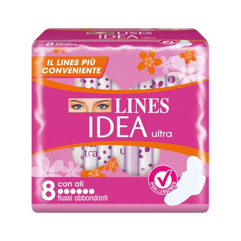 Gli assorbenti Lines Idea sono ipoallergenici e, con il 25% in più di cuore assorbente, garantiscono la massima assorbenza offrendo una continua sensazione di morbidezza sulla pelle. Dotati di un nuovo design super femminile assicura il massimo comfort e protezione per renderti libera di vivere la tua giornata anche con il ciclo. Gli assorbenti Lines Idea sono dotati di un esclusivo sistema Neutralizza Odori che, grazie alla molecola N3, intercetta le particelle di odore, le cattura e le neutralizza.