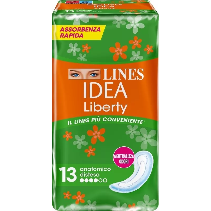 Gli assorbenti Lines Idea offrono la protezione e il comfort lines e si prendono cura della pelle offrendo un'ottima sensazione di morbidezza.