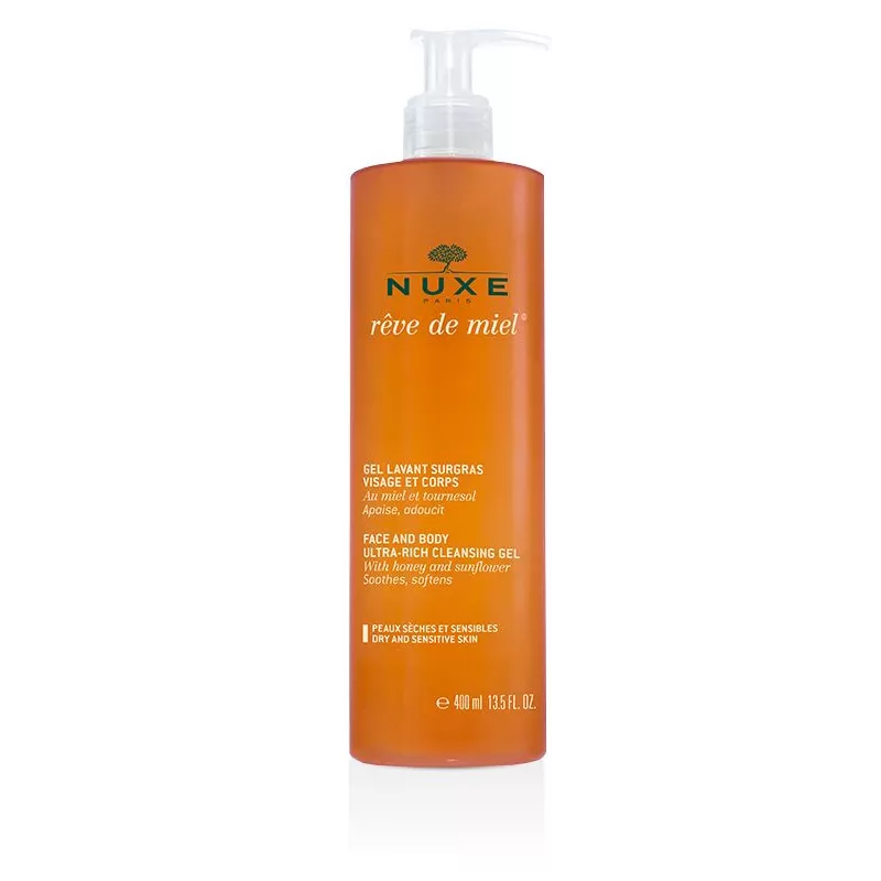 Gel lavante viso e corpo surgras al miele e al girasole, cremoso e deliziosamente mielato. Si prende quotidianamente cura delle pelli secche e sensibili rispettando il film idrolipidico. Deterge il viso e il corpo senza seccare.