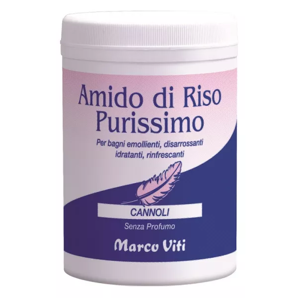 Amido di riso puro al 100% senza profumo e senza conservanti. Esplica sulla pelle un'azione rinfrescante, lenitiva ed emolliente. ideale per l'igiene quotidiana del neonato e per la detersione delle pelli più delicate.