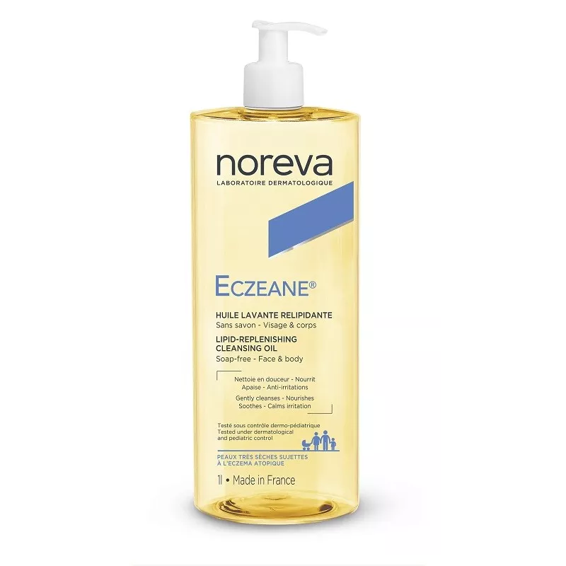 Grazie alla base detergente ultradelicata senza sapone e senza profumo, l’olio detergente Eczeane è ideale per detergere quotidianamente le pelli molto secche di tutta la famiglia soggette a dermatite atopica. Il trio esclusivo di oli ricchi di acidi grassi essenziali (borragine, enagra, inca inchi) consente di nutrire a fondo, proteggere e lenire la pelle. La texture leggera, non grassa e facile da risciacquare lascia la pelle particolarmente morbida.