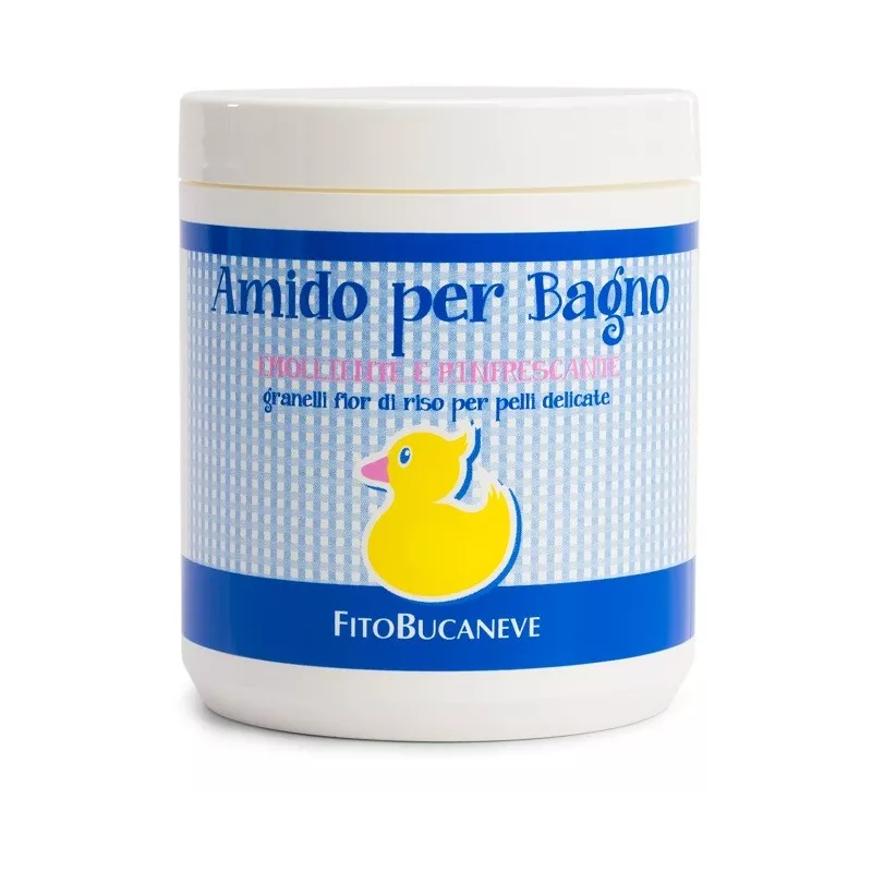 Lenitivo, idratante e rinfrescante, l'amido di riso mantiene la pelle fresca e vellutata. É indicato contro pruriti, screpolature, arrossamente, bruciature solari e irritazioni in genere della pelle, così pure come pediluvio per piedi stanchi. Speciale per il bagnetto dei bambini, l'amido di puro riso é particolarmente indicato per il trattamento delle pelli delicate e facilmente arrossabili.