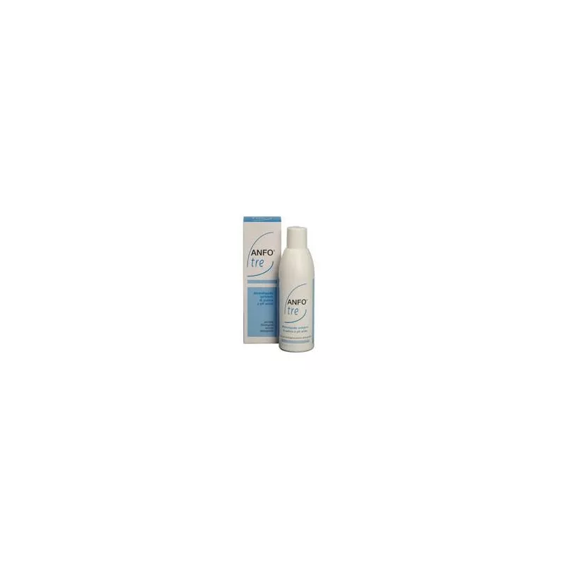Detergente universale concentrato, a base di tensioattivi solamente anfoteri che a pH 3,5 (acido) sviluppano una buona azione antibatterica. Anfo3 svolge una corretta azione detergente e riacidificante della cute del viso e del corpo e delle mucose. E' adatto in presenza di sudorazione eccessiva, micosi e numerosi disturbi dermatologici con alterazione del fisiologico pH cutaneo. Igiene degli sportivi. Si usa diluendo poche gocce di prodotto con l'acqua, facendolo schiumare e risciacquando accuratamente.