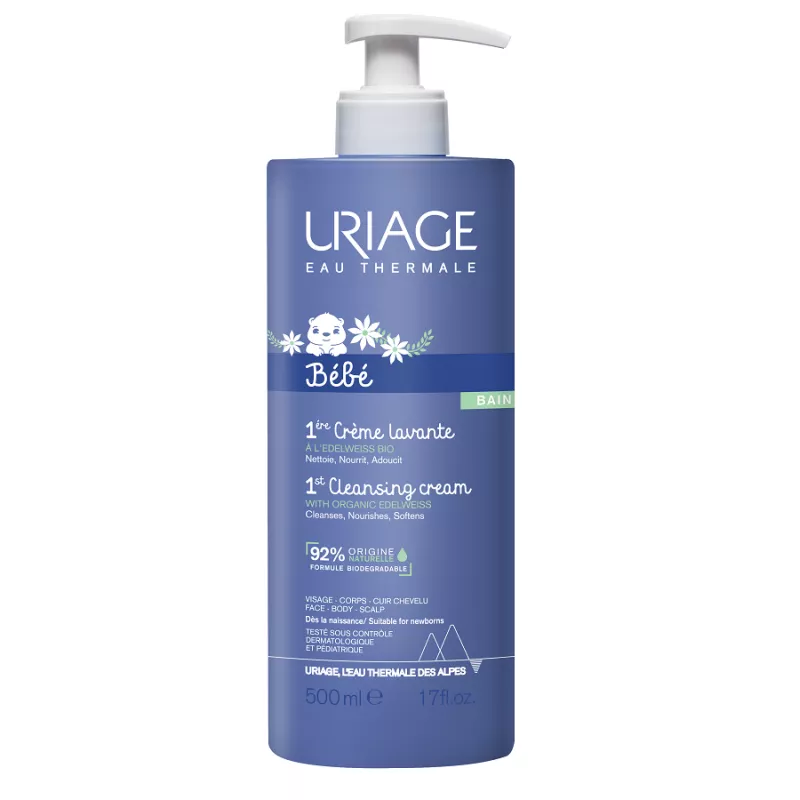 Crema detergente ricca e cremosa, deterge delicatamente e preserva il film idrolipidico. La sua formula con un complesso naturale (acqua termale di Uriage e stella alpina biologica] e burro di karité lascia la pelle idratata.