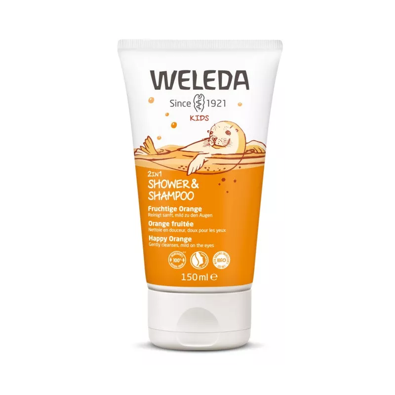 Docciaschiuma e shampoo al profumo di arancia. Deterge dolcemente con Tensioattivi ecologici.