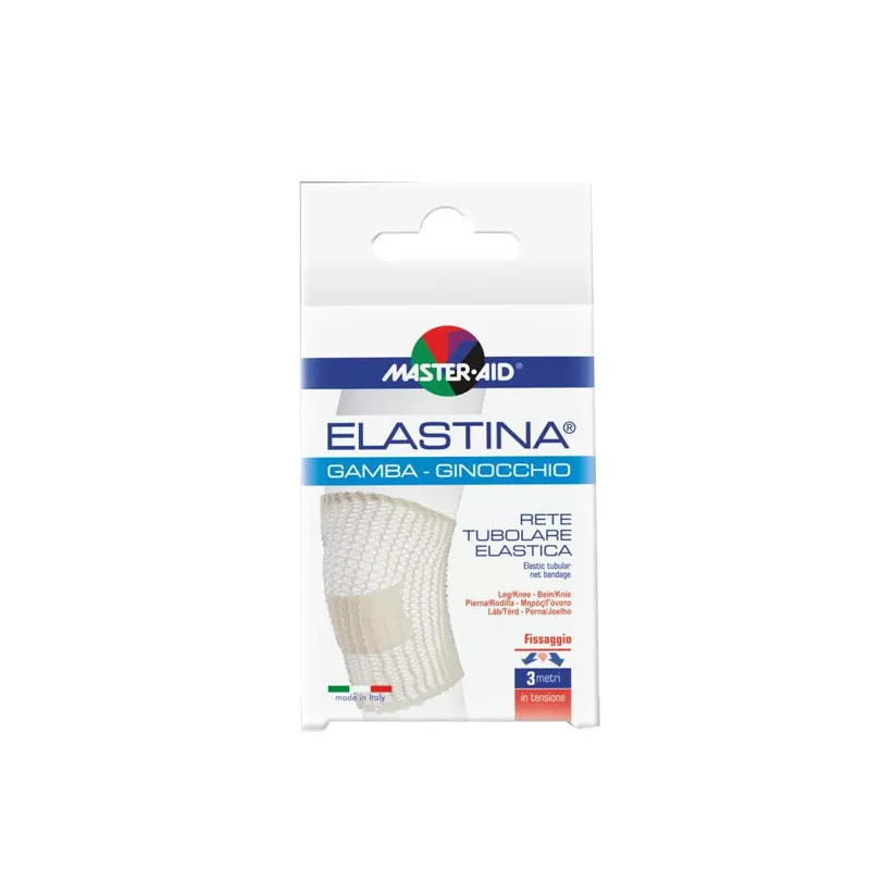 Rete tubolare elastica, ipoallergenica per gamba e ginocchio. Non impedisce i movimenti perché estensibile lateralmente e longitudinalmente. Facilita ispezioni e sostituzioni della medicazione. Si taglia nella misura desiderata. Non sfrangia e non si smaglia. 3 metri in tensione, calibro 5 cm. I prodotti Elastina sono protetti da una busta in plastica richiudibile che ne preserva l'igiene.
