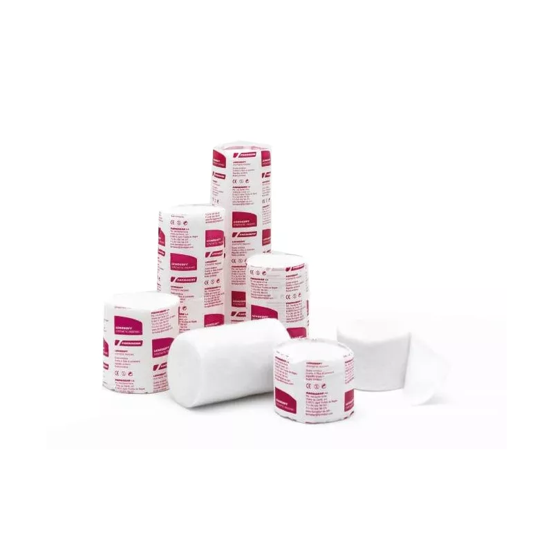 Ovatta sotto gesso sintetica. Materiale per imbottitura e protezione bianco in diverse dimensioni avvolto in involucro di carta. Tessuto non tessuto bianco, non irritante. La massa fibrosa mantiene la spugnosità, l’elasticità che permette una perfetta conformazione e protezione della pelle necessaria a seguito della pressione realizzata dai sistemi di immobilizzazione. La composizione e la resistenza del materiale permettono un’applicazione circolare e la capacità di trazione permette a sua volta di essere apposta in zone particolarmente difficili (gomiti, talloni ecc). La buona proprietà del sintetico Lenosoft non si perde quando si utilizza per un lungo periodo. Per sua naturalezza il materiale presenta un effetto adesivo che facilita l’applicazione richiedendo una semplice manualità. Una volta applicata mantiene uno strato liscio di spessore uniforme che evita punti di pressione che potrebbero creare problemi locali di circolazione. Permeabile all’aria, Lenosoft compensa la temperatura in quanto le fibre non assorbono l’umidità e, nel bendaggio rigido facilita la presa del gesso. Lenosoft non è un prodotto sterile; eliminato l’involucro di carta, può essere sterilizzato in caso necessario a vapore, raggi, ossido di etilene in accordo rispettivamente con le normative EN 554, EN 552, EN 550. Non contiene lattice. Indicato per la protezione delle parti del corpo esposte al gesso oppure ad altri materiali sintetici. Si utilizza anche l’imbottitura per il bendaggio all’ossido di zinco o tape adesivi. Combinata con compresse tessili o compresse di garza di paraffina, Lenosoft agisce come protettore, permeabile all’aria.