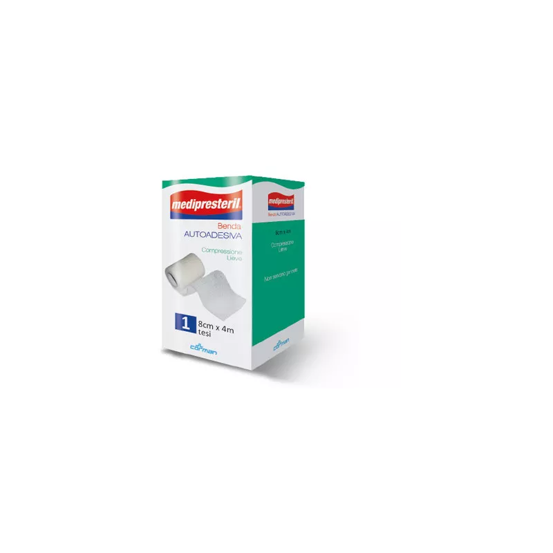 Benda autoadesiva per bendaggi autofissanti e protezione di medicazioni.